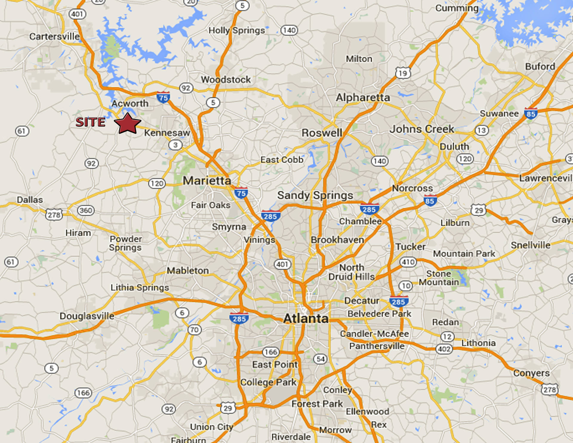 The site is less than a 5 minute drive from downtown historical Acworth. With its proximity to Allatoona Lake and Lake Acworth, this corridor attracts year-round recreational visitors and lakefront residents.