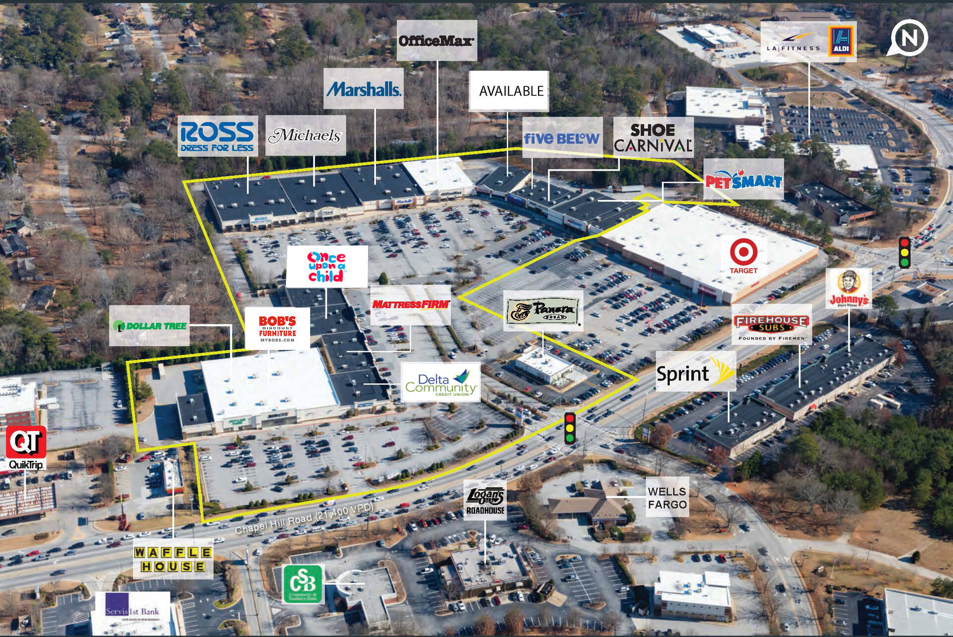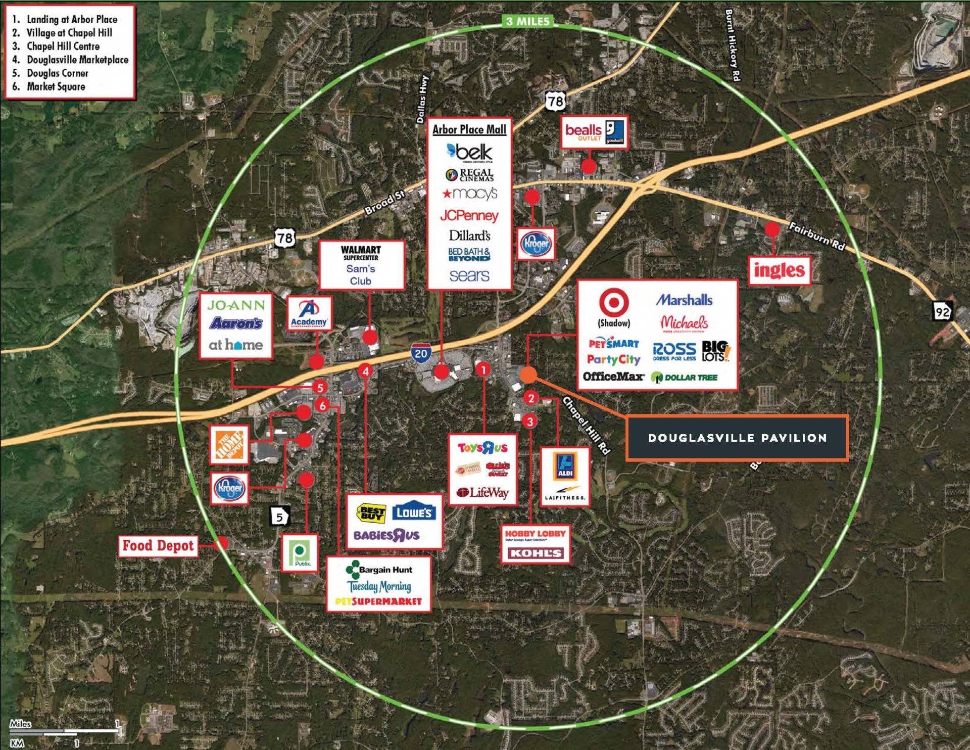 With excellent signalized access from Chapel Hill Road and Arbor Place Blvd, Douglasville Pavilion is strategically located near the front entrance of Arbor Place Mall, which is a 1.2M SF regional mall anchored by Macy’s, JCPenney. and Dillards.