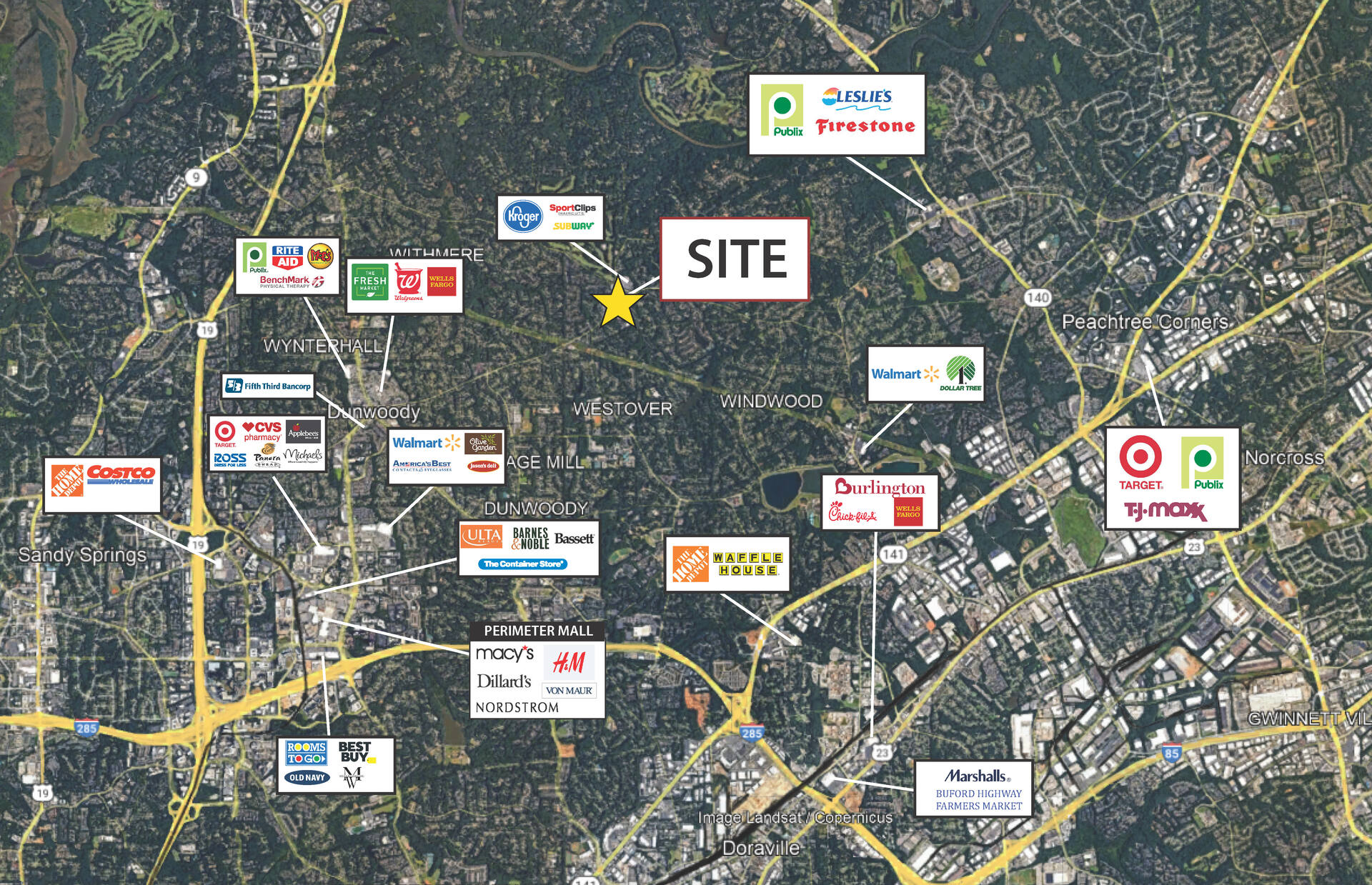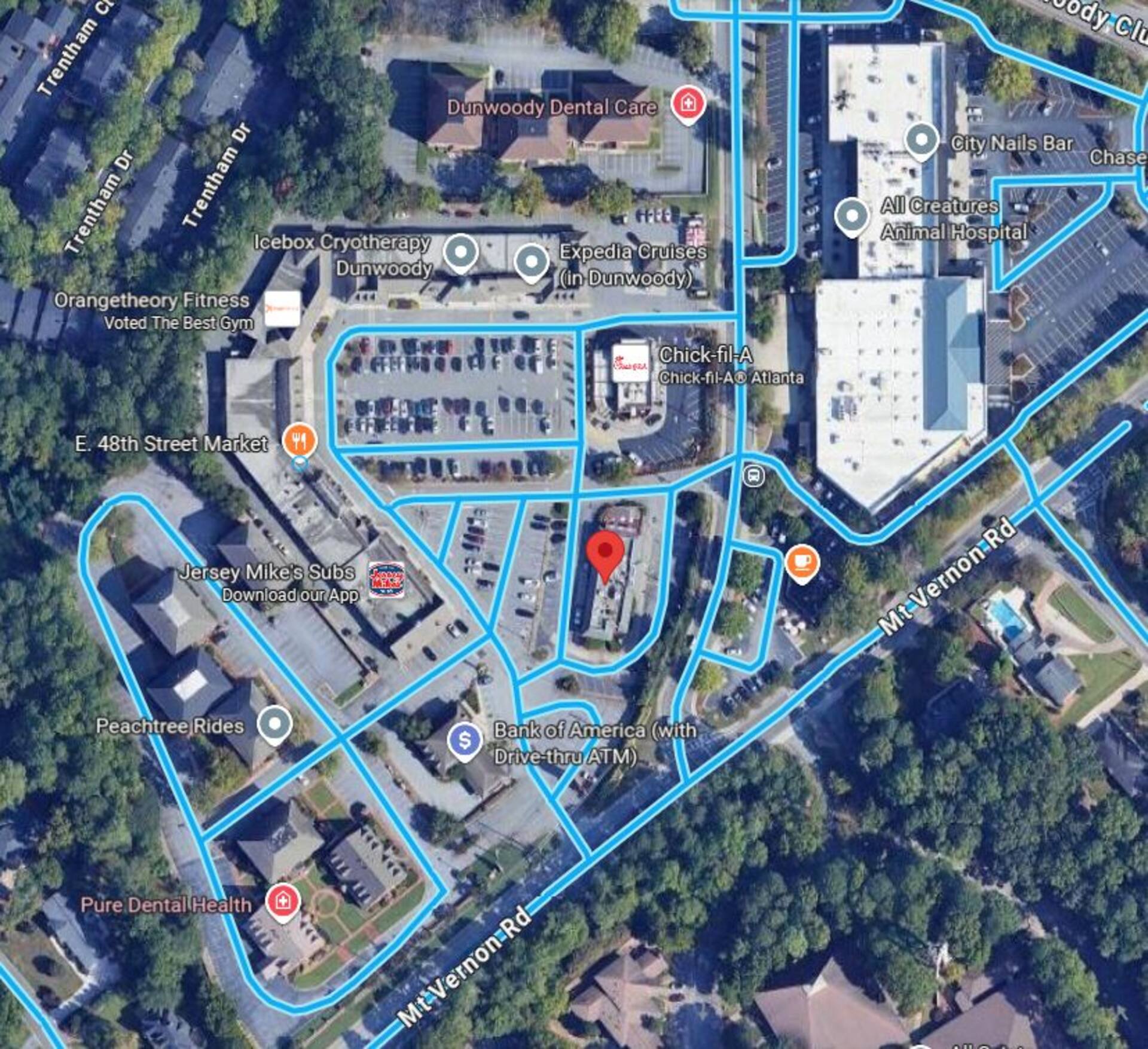 A 0.7 acre former McDonald’s site totaling approximately 4,200 square feet is available in the Williamsburg of Dunwoody shopping center, strategically positioned in the heart of Dunwoody, Georgia. This affluent northern suburb of Atlanta is home to Perimeter Mall, one of the region’s premier shopping destinations, and benefits from excellent connectivity with close proximity to I-285, GA 400, and I-85. The site is also just 30 minutes from Hartsfield-Jackson International Airport, providing convenient access for both local and regional traffic. Located at the high-visibility intersection of Jett Ferry Road and Mt. Vernon Road, the property enjoys approximately 20,000 vehicles per day on Jett Ferry Road and serves as a key neighborhood retail and service hub. With its strong demographics, high visibility, and prime location within a thriving trade area, this site presents an exceptional opportunity for a variety of retail or restaurant uses.
