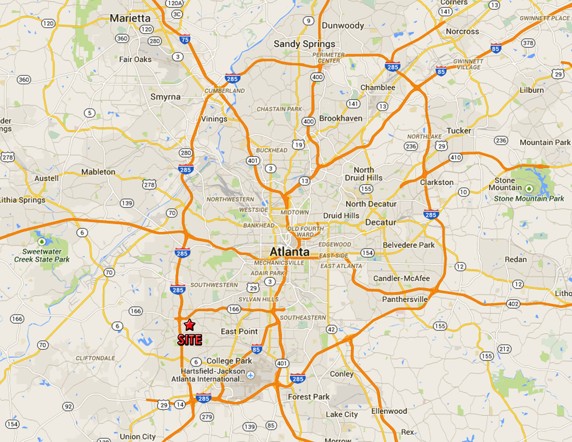 Located 5 miles away from Hartsfield Jackson Atlanta International Airport, the world's busiest airport.