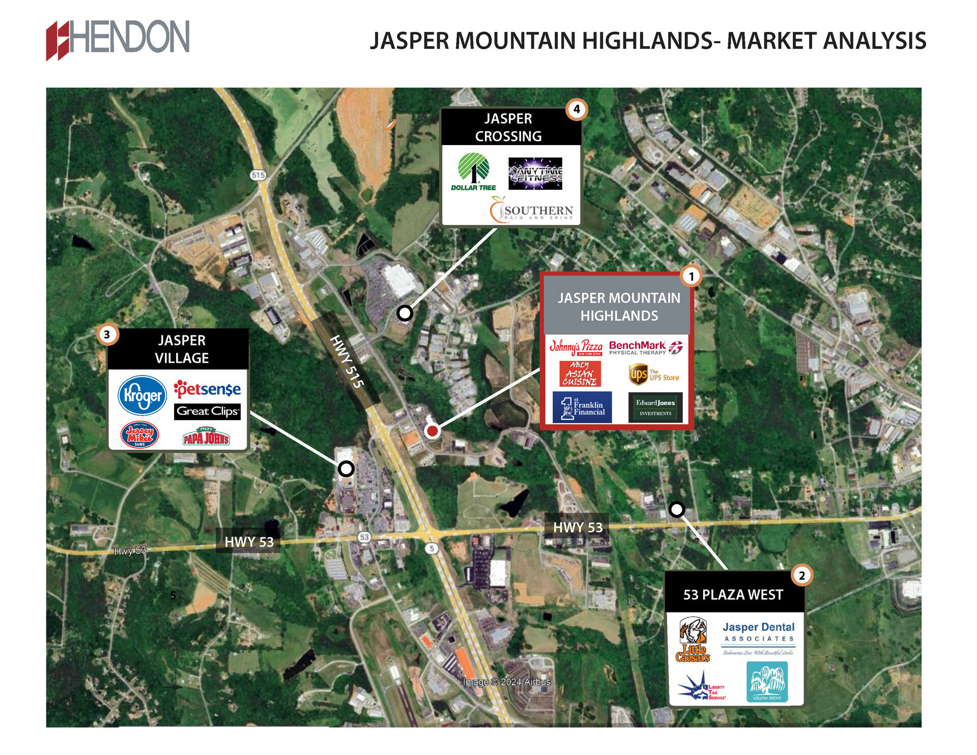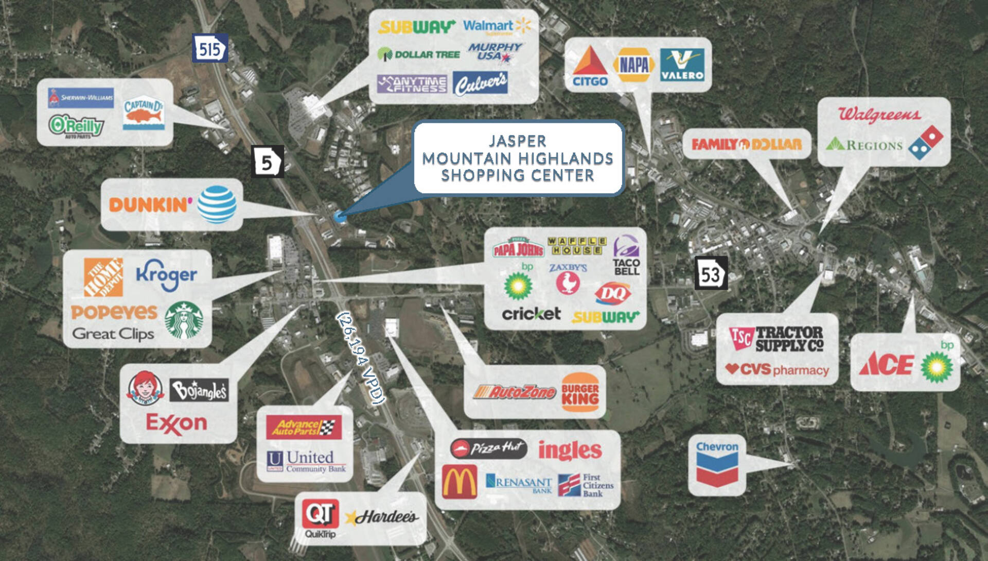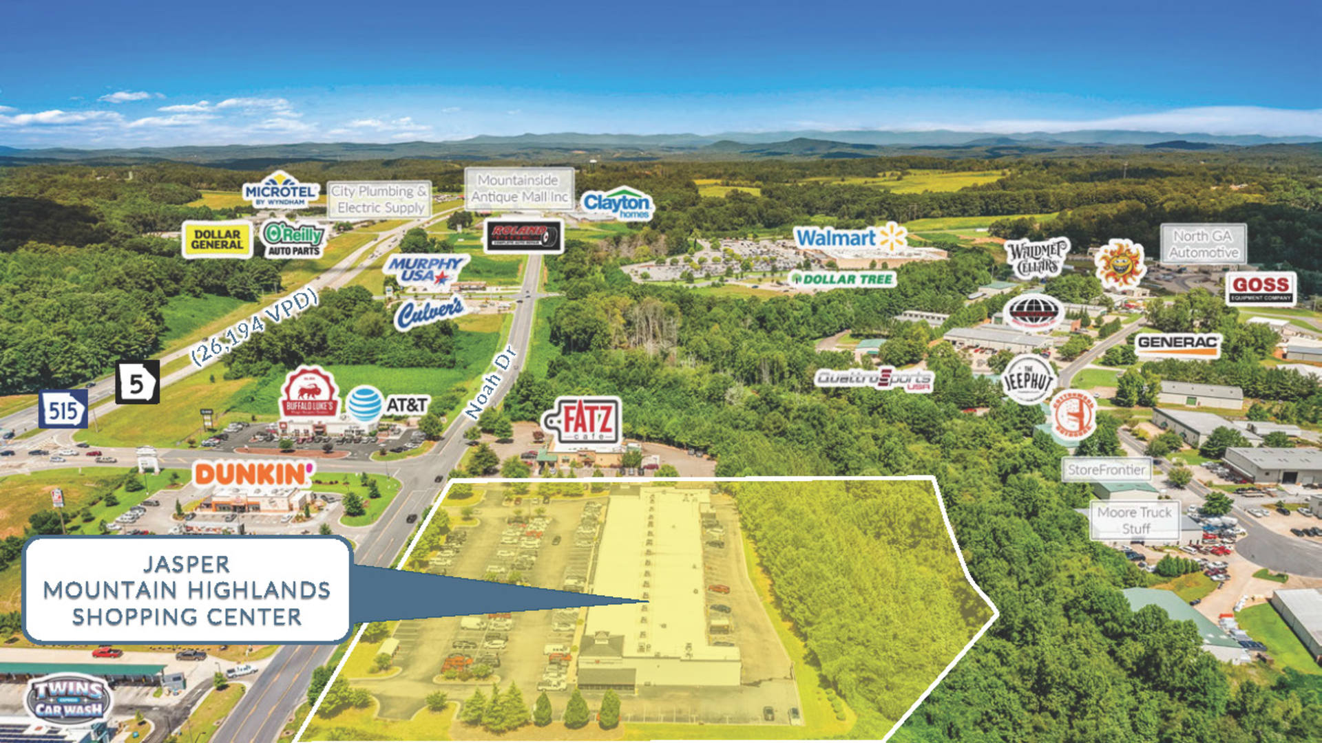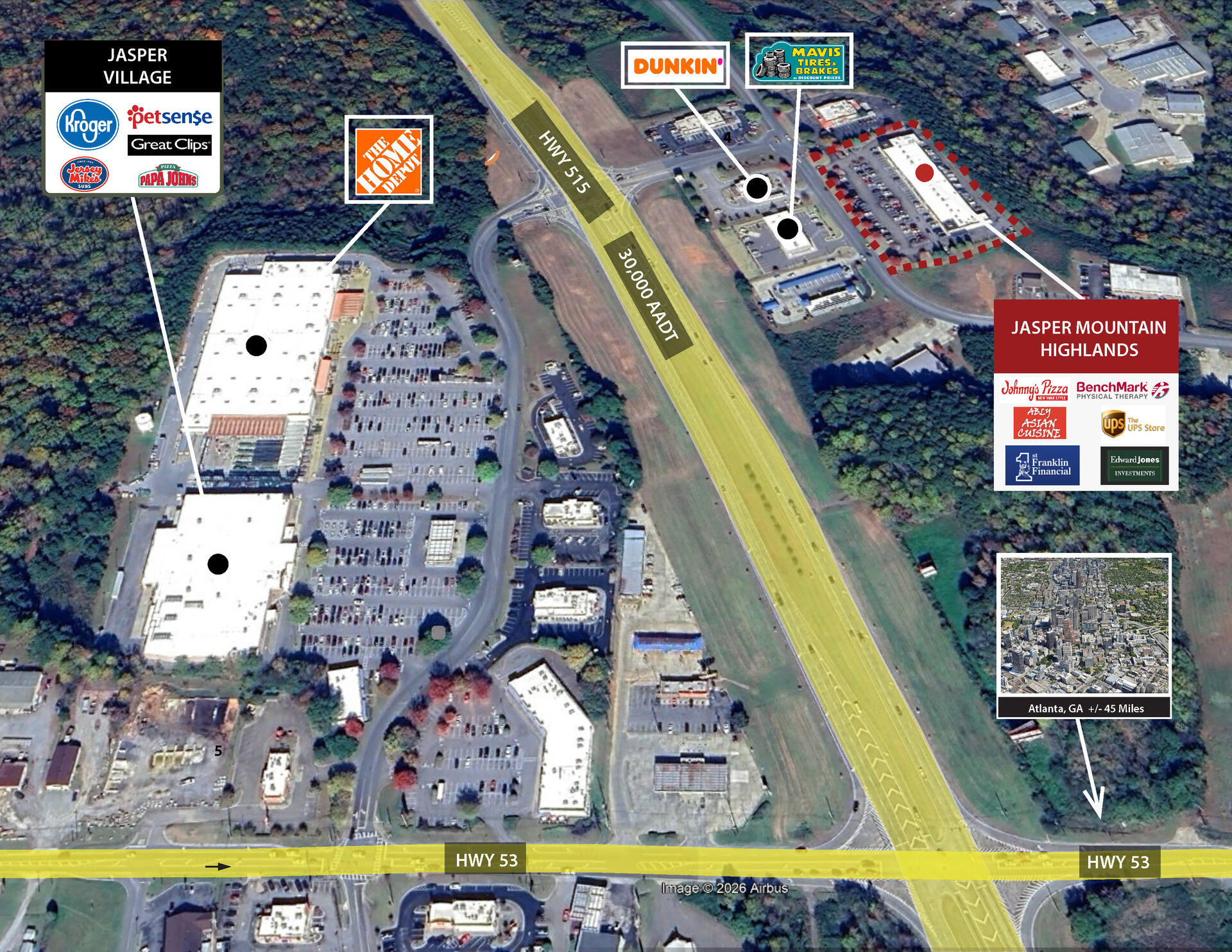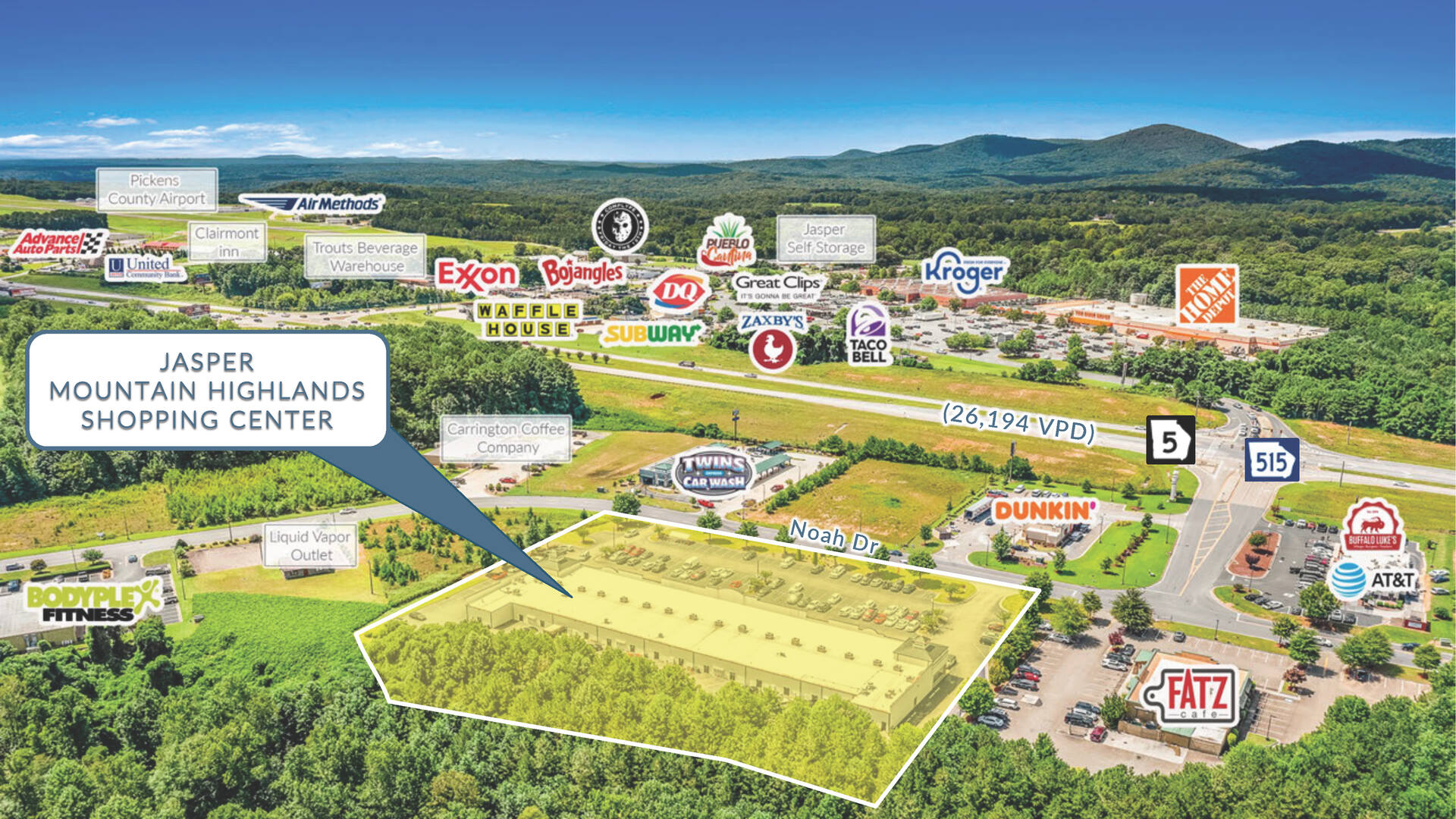 - Signalized hard corner lot with strong visibility and high traffic counts of 24,300 AADT on GA 515