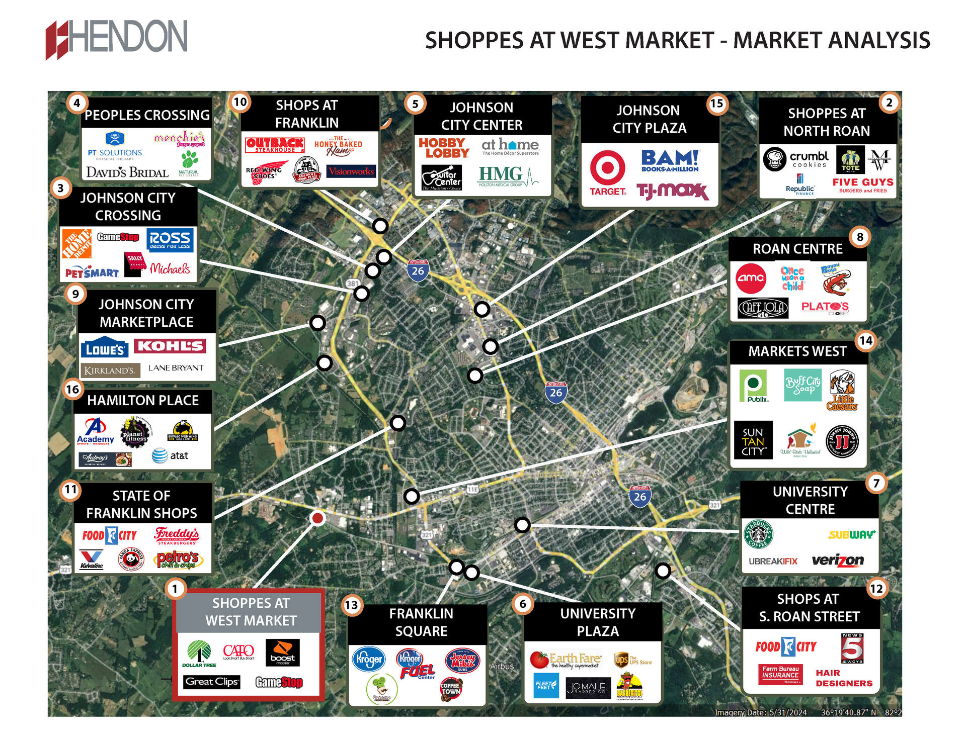 The property is located 2 miles from East Tennessee State University, the fourth largest university in the state of Tennessee. ETSU enrolls 17,000+ students & employs 800+ academic staff. Shoppes at West Market is also less than 2 miles from Johnson City Medical Center, a major medical facility in the Tri-Cities with 2,300 employees & 531 beds. Johnson City Medical center is a Level 1 Trauma Center and one of the 3 major hubs of regional provider Ballad Health. The hospital serves as a teaching hospital for numerous institutions, including the adjacent East Tennessee State University.