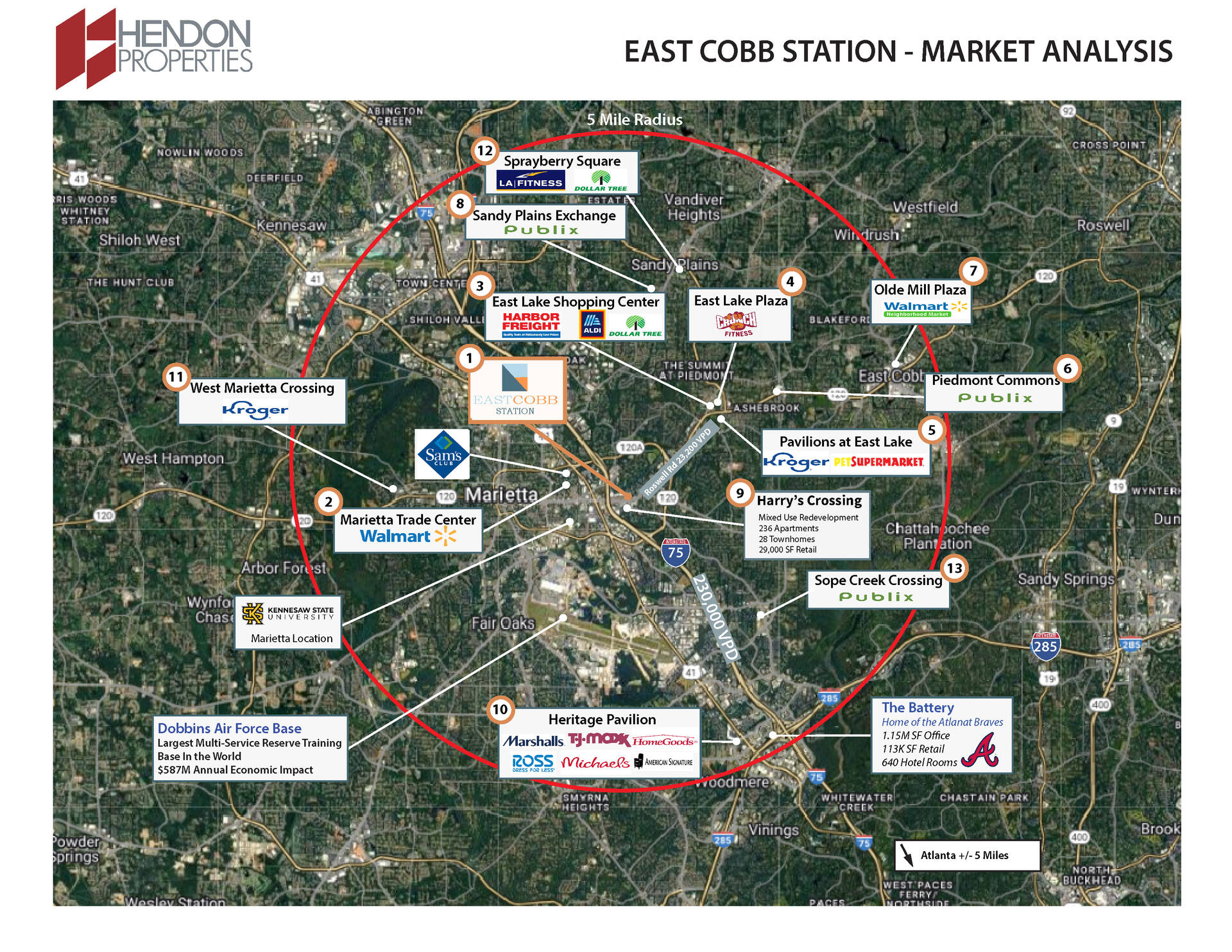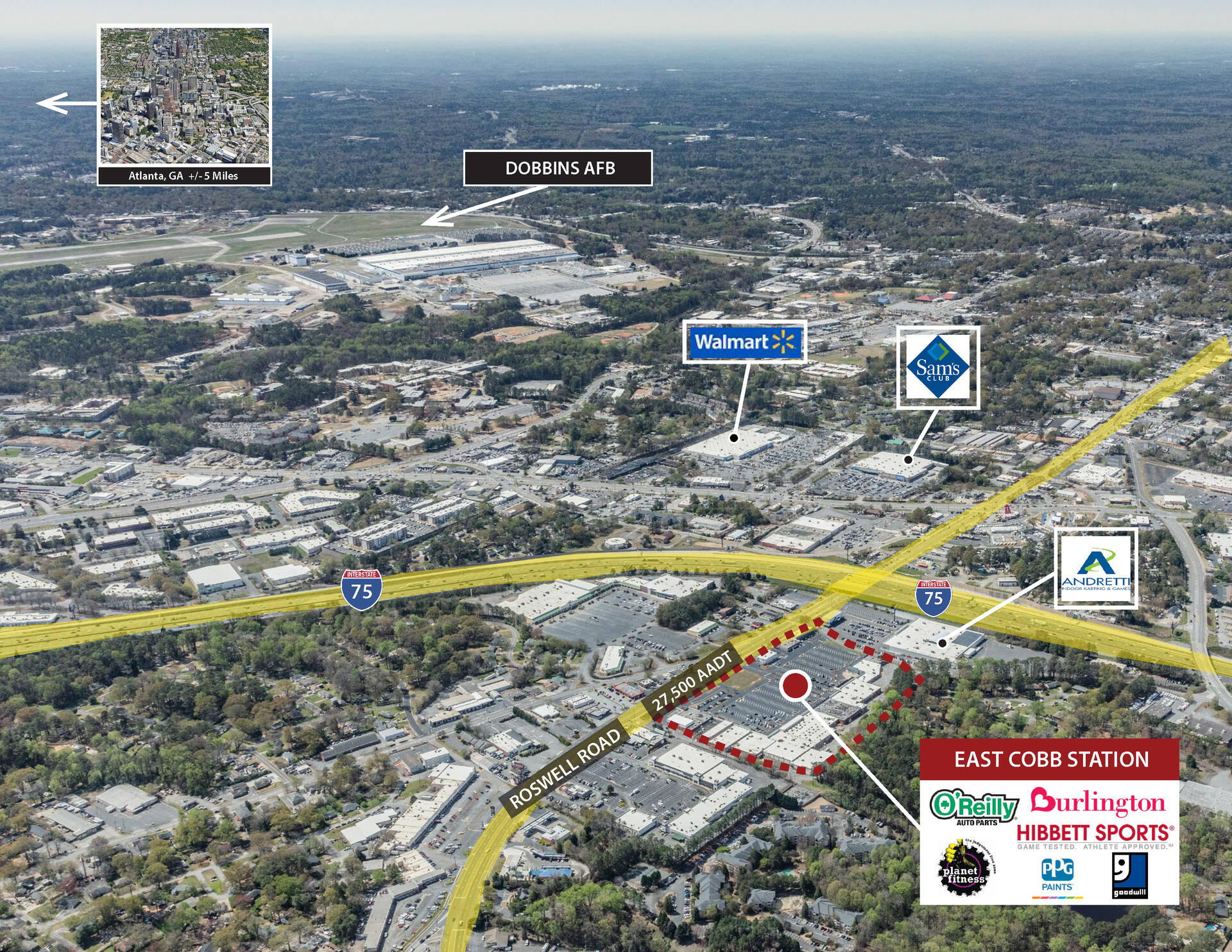 East Cobb Station, located in Atlanta’s most affluent and highly sought after submarkets of Marietta and East Cobb, is a 205,810 square foot retail center anchored by national tenants such as Planet Fitness and O’Reilly Auto Parts.  Surrounded by top-tier employers and benefitting from a dense daytime population of over 155,000, East Cobb Station is located adjacent to Interstate I-75 and less than 7 miles from Kennesaw State University and Cobb County International Airport.